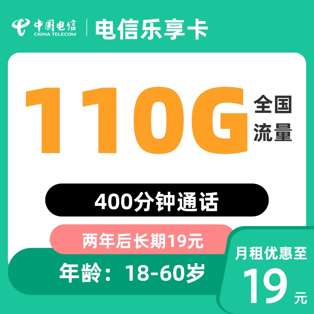 19元110G通用+400分钟+付费提卡·两年后长期19